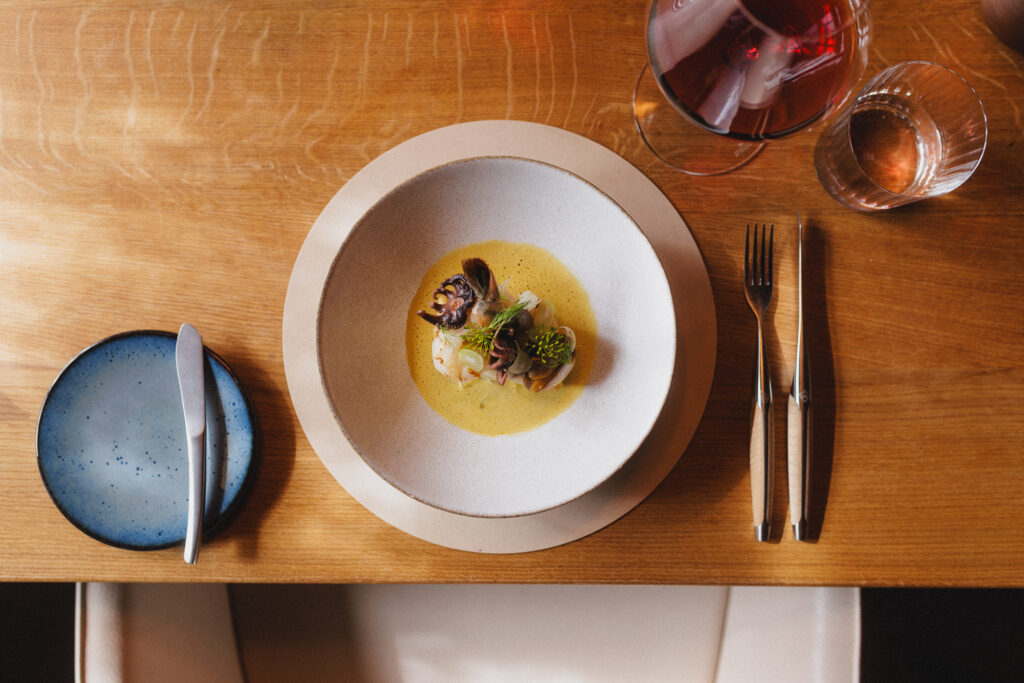 The setting is breathtaking—forests, fields, lakes, and vineyards climbing the slopes. Aux Trois Amis has everything it needs to thrive on what the region provides. The focus is on local and plant-based ingredients, where meat plays a supporting role rather than taking center stage. This is creative, pastoral, and technically driven cooking.