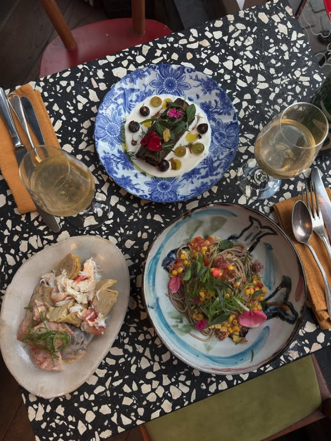 At the corner of Rue Longue Vie, this space once housed an Indian restaurant. And if we hadn’t known the name of the street, we might have thought it belonged to the place itself. The bohemian Le Longue Vie — “The Long Life” — is a celebration of longevity in every sense. The walls are built from salvaged materials, as are the clusters glowing lamps. Wine bottles find new life as candleholders — and they are plentiful. The menu shifts with the seasons, using ingredients from Belgian micro-farms and meat from Carnivale. Here, individuality is embraced — seeking not perfection, but soul.